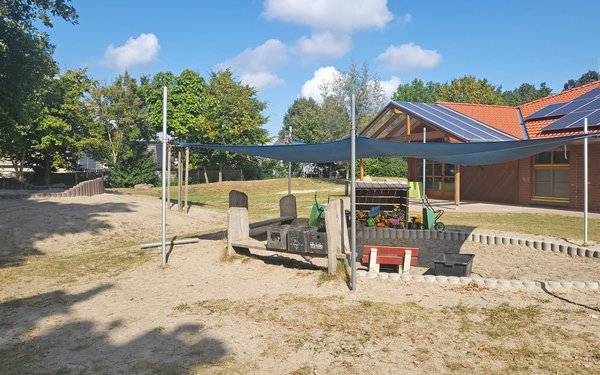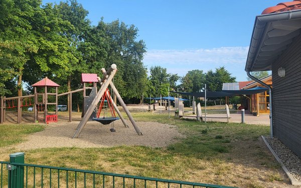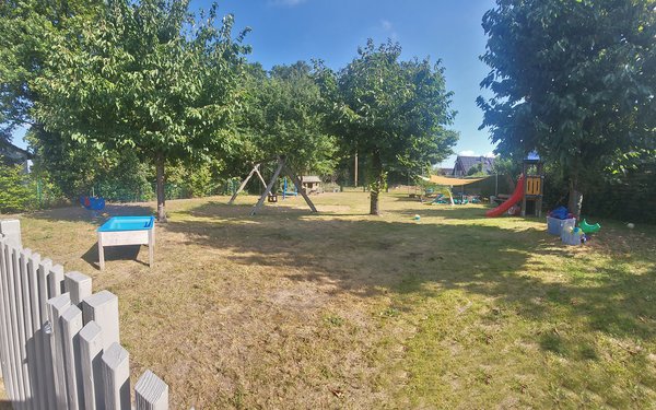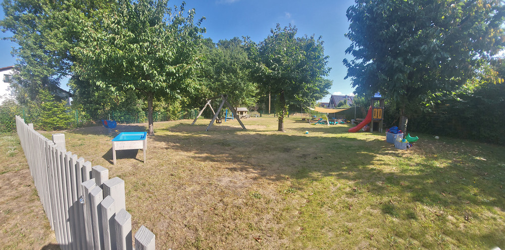 Auf dem großzügigen Außengelände finden die Kinder viel Platz zum Toben und Spielen an der frischen Luft.